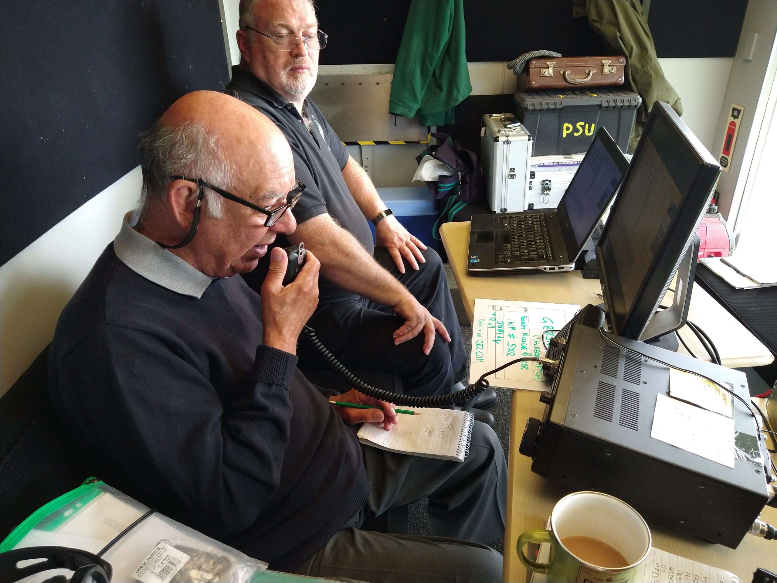 (L to R) John Mulye G0VEH operating with Dave M0MBD log keeping
